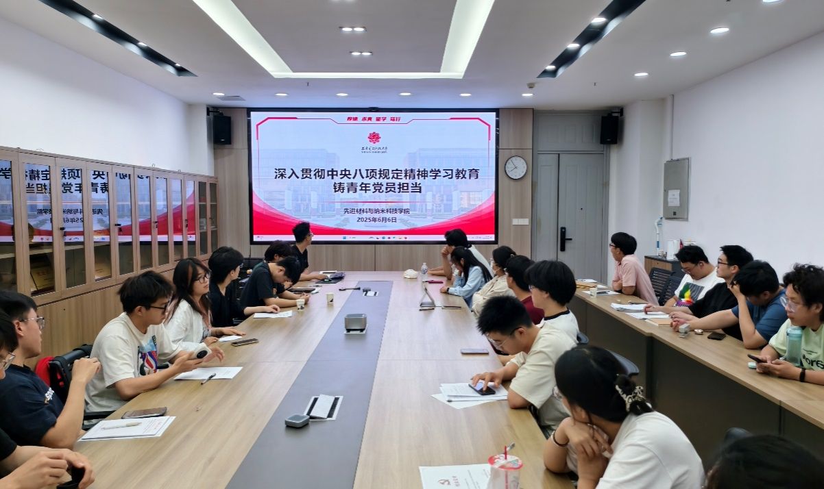 (通讯员  李佳泽开展深入贯彻中央八项规定精神学习教育强化毕业生党员党性修养与纪律意识筑牢理想信念根基,6月6日,先进材料与纳米科技学院本科生党支部在G楼142会议室开展“铸青年担当”主题党日活动通过专题党课、党员分享、重温誓词等环节,为毕业生党员上好离校前的“纪律必修课”。