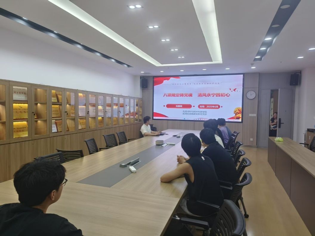 (通讯员 李晓威)6月24日,3044永利集团应用化学系研究生党支部开展以“清风铸魂守初心 廉洁担当践使命”主题党课活动,支部书记张国翔主讲,支部全体党员参会。