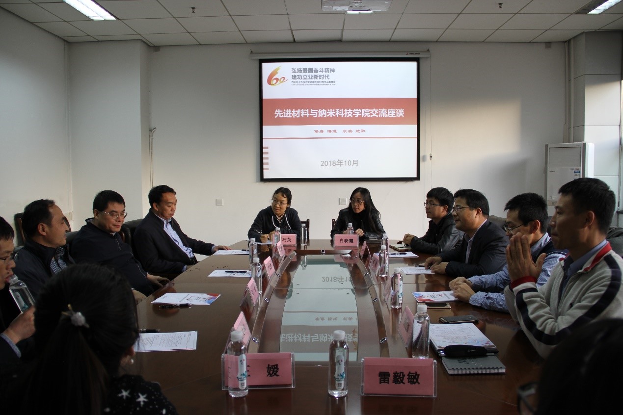 参观结束后,与会专家学者和学院领导、青年教师代表在G楼119会议室进行了座谈。座谈会上,学院领导与各位学者交流了材料学科发展和团队建设,青年教师代表贾巧英、赵振环、白晓霞、雷毅敏、王媛等就个人基本情况、研究方向、科研团队等进行了介绍,并与4位专家学者进行了深入交流与探讨。谈到学院材料学科发展时,刘文胜教授提到,要集中力量、扩大体量,强化人才队伍,注重大团队、大平台的建设,加强学校联动,利用优势资源,并牢牢把握好科研论文这根指挥棒。