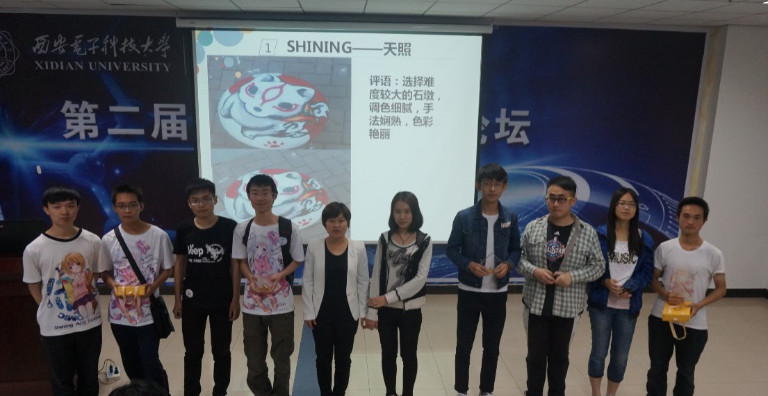 首先,主持人宣布了颁奖仪式的开始,并用精彩的PPT展示了涂鸦大赛中涌现出的一幅幅优秀作品。随后,刘男对大赛进行点评,她表示本届比赛举办的很成功,活动得到了全校同学的积极响应,并在比赛中涌现出了一大批优秀作品,充分展现了作者不凡的创新能力与绘画技艺。最后,主持人依次揭晓了三、二、一等奖获奖作品及获奖团队,获奖者在阵阵掌声中登台领奖,并与颁奖老师合影留念。此外,为表彰以及鼓励积极参加比赛的同学们,学院还开设了“最佳创意奖”、“最佳调色奖”、“最具浪漫奖”等诸多奖项。