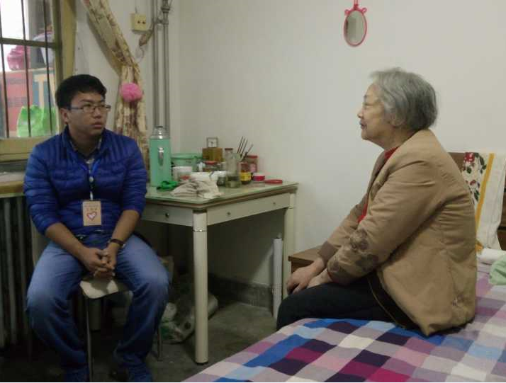 西安的早晨很凉,周末的早晨也适合赖床。但是我们的志愿者们却仿佛形成了习惯,习惯了在周日早起,习惯了清晨的寒风,习惯了在周日去献出自己的一片爱心。我们很快的来到了家属区,看到老爷爷和老奶奶熟悉的面孔,跟他们聊了好多有关他们当年的英雄事迹,同学们为老党员爷爷的爱国信仰所折服。和他们寒暄问暖之后,我们帮他们收拾了屋里屋外的东西,整理一些杂物。虽然这只是一些微不足道的事情,却是我们能献上的一点点关爱,在与他们聊天过程中,我们知道了他们缺少的就是有人陪伴,我们也告诉他们,以后会经常来看看。