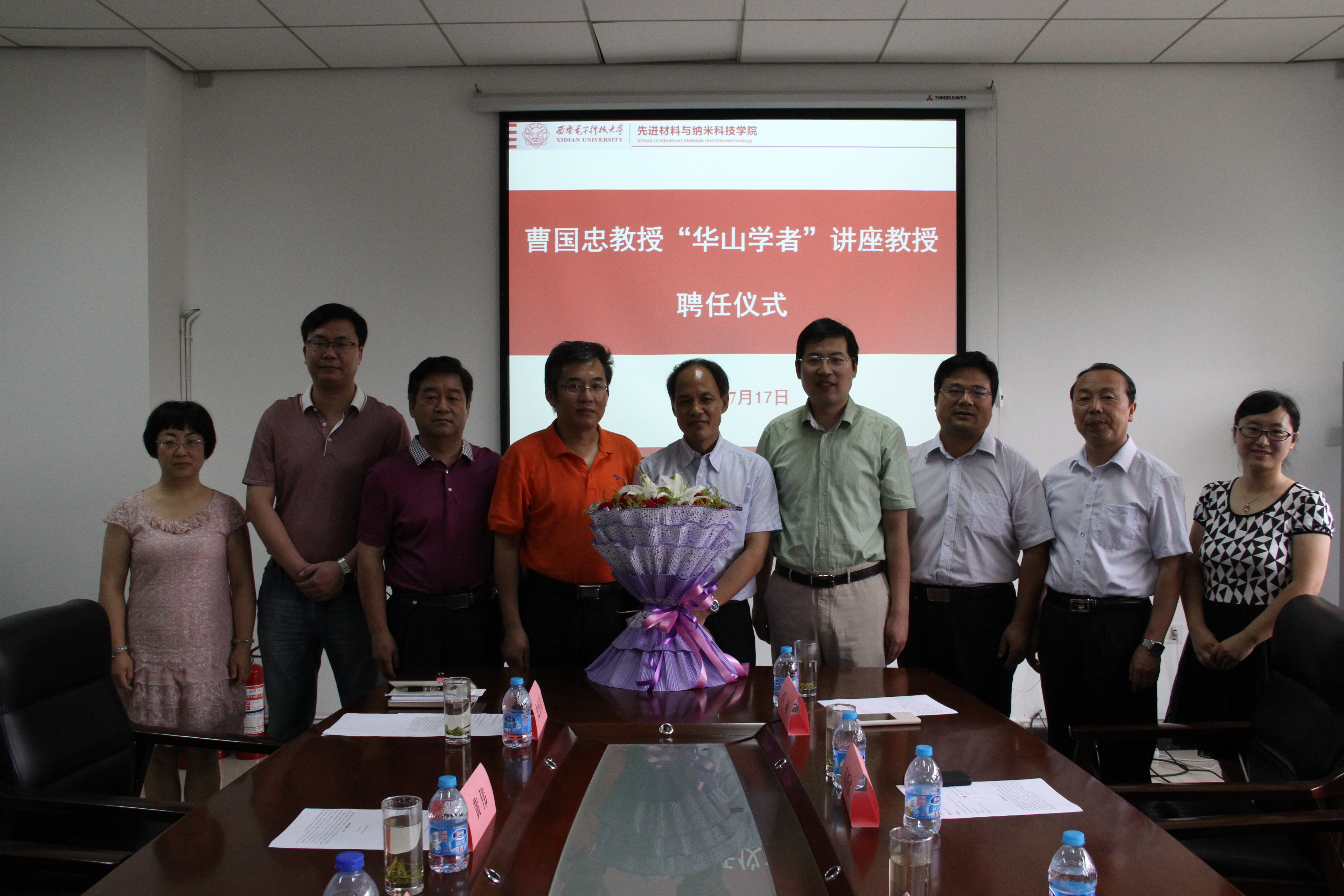 高新波代表学校感谢曹国忠教授接受邀请,担任3044永利集团“华山学者”讲座教授。高新波指出,曹国忠教授学术成就卓越,是美国华盛顿大学材料科学与工程系波音-斯坦纳终身讲席教授,是国际知名的纳米材料领域的专家,他的加盟将进一步促进学校材料学科的发展。希望3044永利集团能以此为契机,借助曹国忠教授的国际视野和学术水平,不断加强国际学术交流,推动学院高层次人才队伍建设。