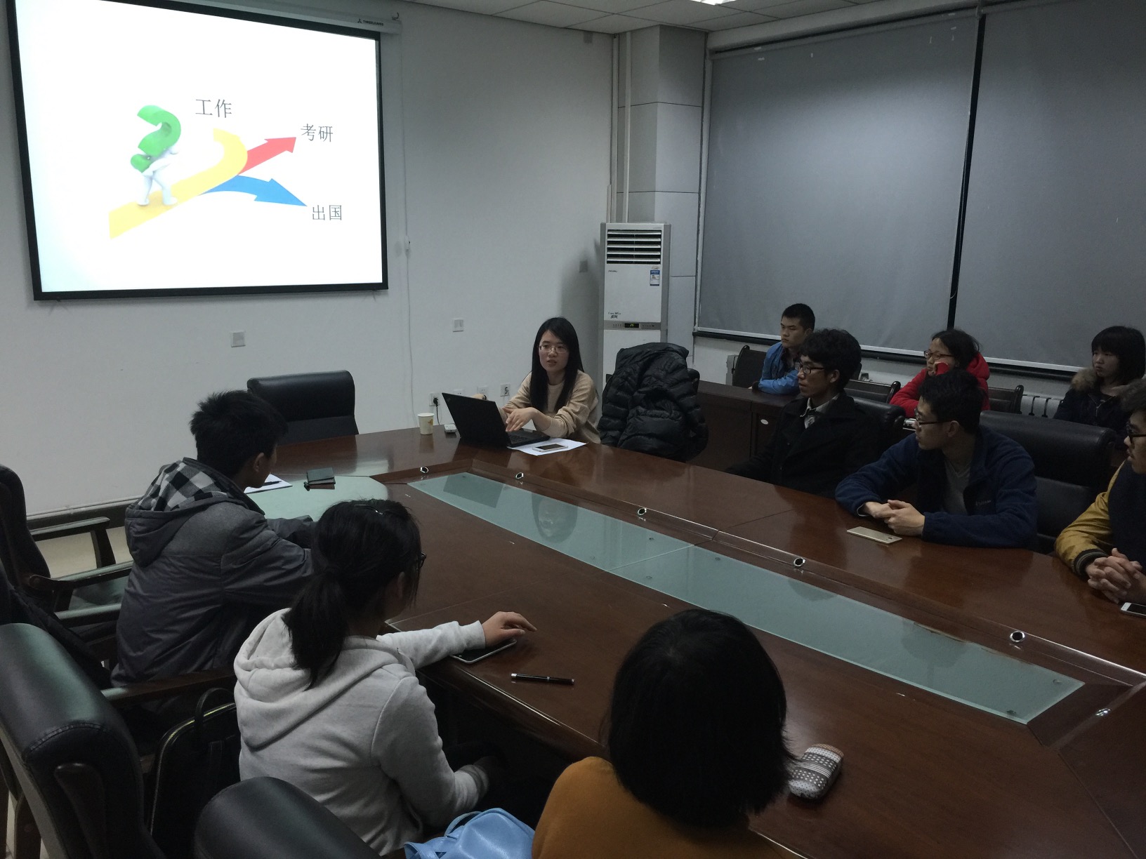 此次交流会的主题为“正确认识专业学习、有效规划大学生涯”,同时也作为“大鹏展翅”培训计划的启动会议。经过班主任张鹏简要的介绍之后,周雪皎老师结合自身的求学生涯和科研经历,详尽地为同学们介绍了大学生将来可选择的发展道路:考研、出国和就业。周雪姣有着扎实的化学专业知识,深入浅出地把化学专业的三方面做了全方位的介绍,并和同学们分享了自己的学习方法。接着,周雪皎强调大学生活中培养自身兴趣爱好和提高自身学习科研能力的重要性,她鼓励大家多多参与各种有益的社团组织的活动,在不断的实践尝试中提高自己的能力。紧接着学生们踊跃发言,纷纷提出自己在学习和生活上的困惑,两位老师一一为同学解答,并就就业和考研热点问题进行深入的解析,现场气氛十分活跃,同学们表示感悟良多。最后,交流会的全体参与人员进行合影留念。