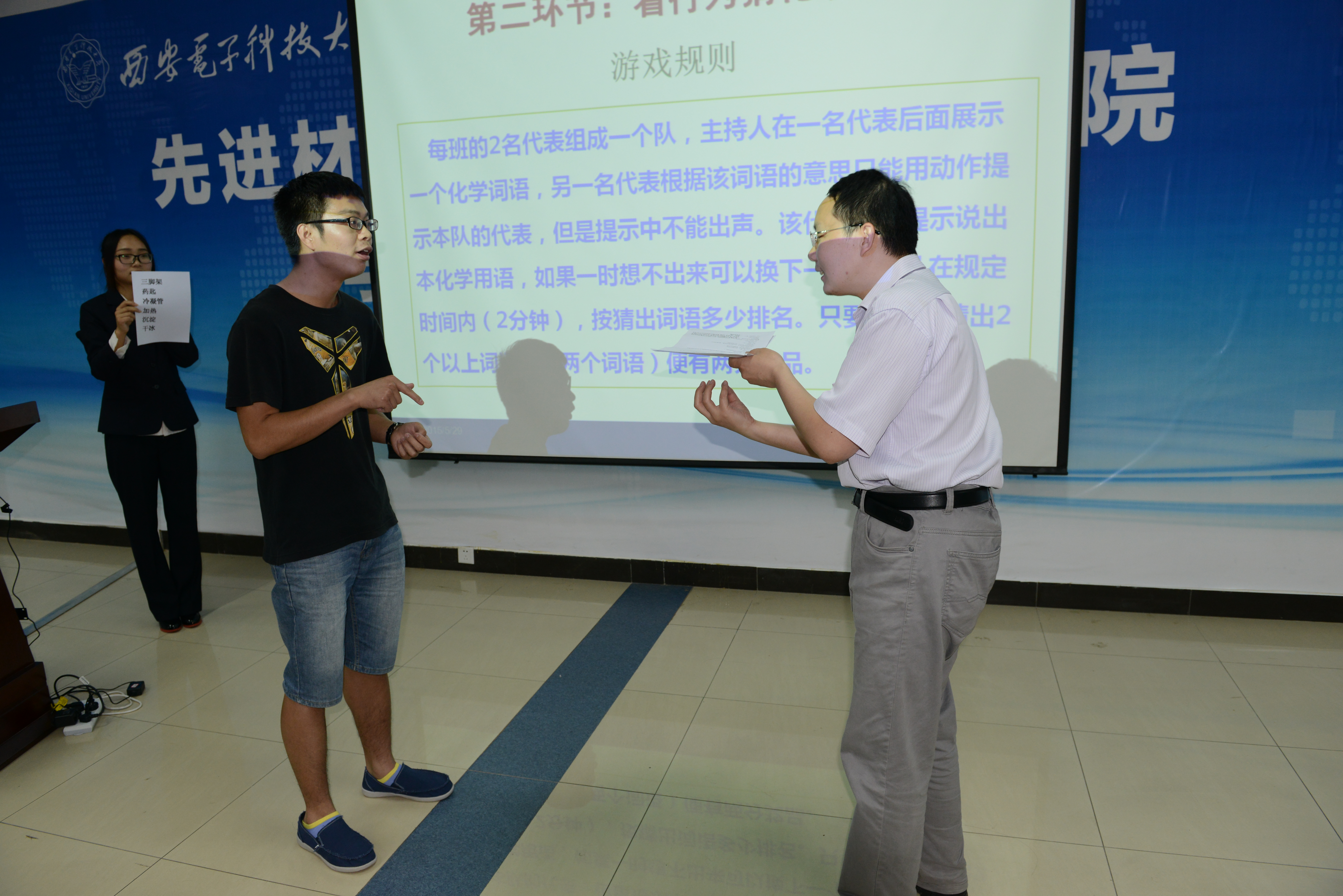 闭幕式上,为展现化学魅力,学院还举办了“徜徉知识的海洋,感受化学与生活”为主题的别开生面的化学趣味知识抢答游戏。通过惊险刺激的实验演示、诙谐幽默的化学图片、互动有趣的行为猜词游戏,考验同学们化学知识的学习、储备和灵活运用能力。每个环节都紧张刺激,扣人心弦。同学们同场较量,热情高涨,机智谨慎,现场掌声不断,气氛紧张活跃。