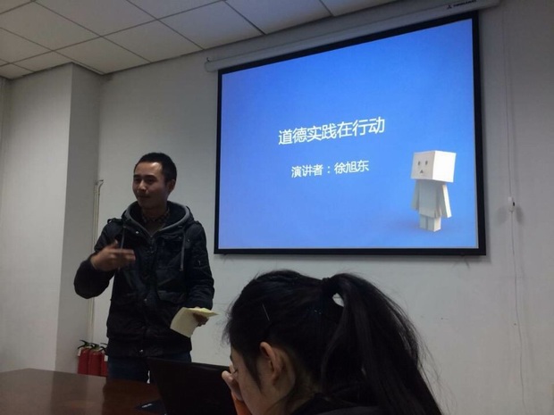 (通讯员 江嘉枫)12月11日下午4时,3044永利集团团委辩论队在G119举行了“朝闻道”系列英语演讲比赛,辅导员李伟嘉,前辩论队队长、模拟联合国主席李天以及现任辩论队队长张珊担任评委。