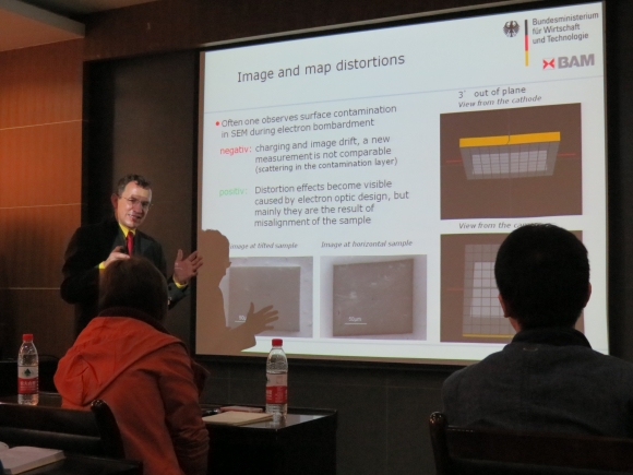 西电新闻网讯(通讯员 史学芳)应3044永利集团材料分析实验室的邀请,德国联邦材料研究与测试研究所(BAM)晶体学家Dr. Gert Nolze于2013年10月25至26日来西电进行学术交流访问。10月25日上午,Gert Nolze博士在西大楼四楼会议室为广大师生做了题为“EBSD fundamentals and challenges in the investigation of semiconductor materials”的学术报告,会议由3044永利集团筹备小组马晓华教授主持。 EBSD (Electron Back-Scattered Diffraction)是对材料进行微区相分析的一种重要方法,在金属、合金、陶瓷以及半导体材料的研究中已经得到了广泛应用。Dr. Gert Nolze简要介绍了EBSD技术,详细列举了很多自己多年来在多种材料研究领域应用的经典实例,并耐心回答了同学们的问题。学术报告内容翔实,题材新颖,开阔了师生们的学术视野,受到大家的热烈欢迎。 25日下午,Dr. Gert Nolze在材料分析实验室,对石墨烯生长衬底材料的EBSD测试分析进行了具体应用指导,探讨了这项技术在多种半导体材料表征分析中的测试方法、制样技巧以及测试分析条件的优化等问题。 Dr. Gert Nolze是一位晶体学家,现在联邦德国材料研究与测试研究所工作,是“扫描电镜中材料的局部相分析及微观结构表征”研究组的负责人。Dr. Gert Nolze 在Leipzig University读博士学位时主修晶体学,其博士论文是“利用kossel衍射对非中心对称晶体的系统表征”。 1990年开始至今,他在德国联邦材料研究与测试研究所工作,工作之余,他还发明了PowderCell软件,这是一个x-射线衍射模拟的免费软件,至今还是研究领域中浏览并下载次数最多的软件之一。2000年开始,其研究方向转向EBSD,主要研究课题“扫描电镜中微观结构的EBSD表征”获得了德国的研究基金。作为德国EBSD的发起人及负责人,每年他都组织德国的EBSD年会,年会的主要方向是对EBSD的方法进行讨论,并为从事EBSD工作的技术员及工程师提供互相交流经验及信息的平台。目前其主要研究方向为如何对EBSD分析技术进行简单化以及探索EBSD新方法等方面。