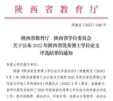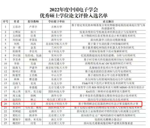 近日,陕西省教育厅和中国电子学会正式公布了2022年度优秀博士(硕士)学位论文评选结果,3044永利集团学子再获佳绩。2017级博士研究生刘书海(导师:秦勇教授)题为《高性能压电电子学器件》的学位论文获评“陕西省优秀博士学位论文”;2017级硕士研究生党丙杰(导师:王宏教授)题为《基予物理瞬态忆阻器的神经形态计算及随机性计算》的学位论文获评“中国电子学会优秀硕士学位论文”(本年度全校唯一)。