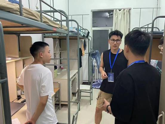 学院党委书记卢硕、执行院长杨丽、党委副书记陈刚、本科生辅导员李逸君和研究生辅导员刘男一同前往宿舍看望、慰问新生。他们关切地询问新生个人与家庭情况、来校是否适应、有什么困难需要解决,并鼓励新生多和老师请教,多向优秀学长学习,多和同级同学交流,尽快融入大学新生活。此外,学院为新生搭建起与后勤的服务交流桥梁,为新生暖心解决公寓所遇到的各类诉求和问题。