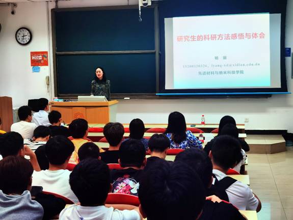 “人类每一个进步,社会每一点发展,国家每一步强大,本质上都是科学技术的进步,与科研工作者的贡献密不可分。”杨丽以开展科研工作的意义为切入点,为同学们阐述了科研工作的重要性。杨丽以半导体的中国“芯”之痛、高温航空航天薄膜涂层研发的中国“心”之痛等为例,指出虽然我国已到达世界科学中心的边缘,但我国整体科技实力还不容乐观。她强调,材料是引领产业革命、重塑世界的重要基石,是电子信息的基础,材料领域人才是与电子信息并提的12类紧缺人才之一,所以对于国家来说培养电子信息材料拔尖创新人才迫在眉睫。
