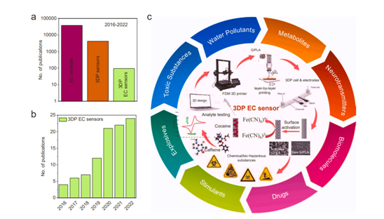 近十年来,3D打印技术飞速发展,使得生产用于生化传感领域的低成本、小型3D打印设备成为可能,这是朝着提高生活质量和实现“联合国可持续发展目标3:良好健康和福祉“迈出的有力一步。与传统制造工艺相比,3D打印具有更灵活的设计制造、更低的能耗和废物产生、更短的上市时间等优势,现在科学家、工程师、医疗专业人员都能更轻松的构建原型。