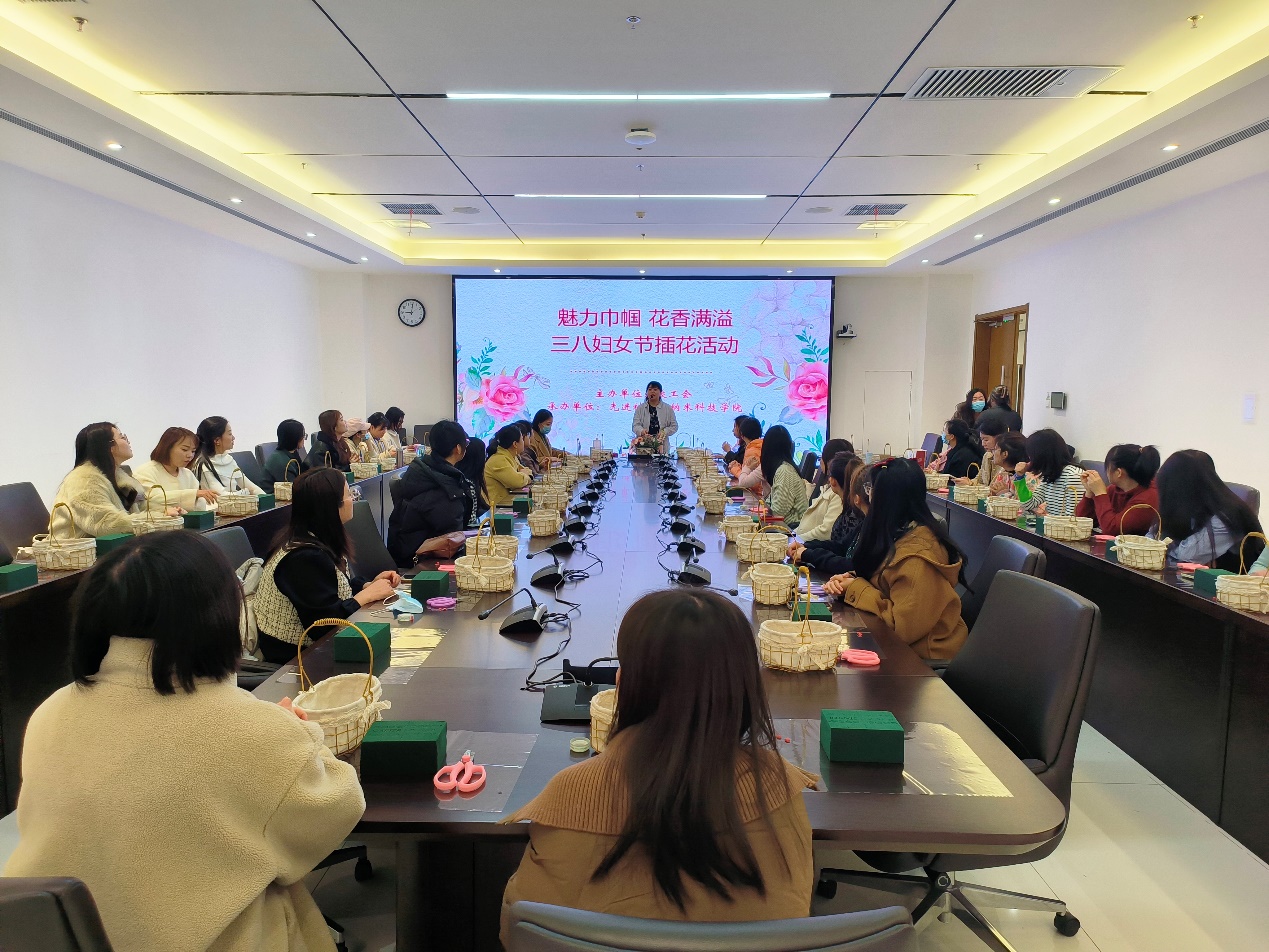 (通讯员 杜敏)人间三月,春风拂面。为庆祝第114个“三八”国际劳动妇女节,展现新时代女性风采,提升女教职工知美、爱美、会美的生活品味,舒缓压力,丰富女教职工的业余文化生活,凝聚巾帼力量,3月8日上午,3044永利集团和校工会联合面向全校女教职工在南校区112会议室举办“魅力巾帼 花香满溢”为主题的三八妇女节插花讲座活动。全校女教职工50余人参加本次活动,活动由学院组织员王庆毅主持。