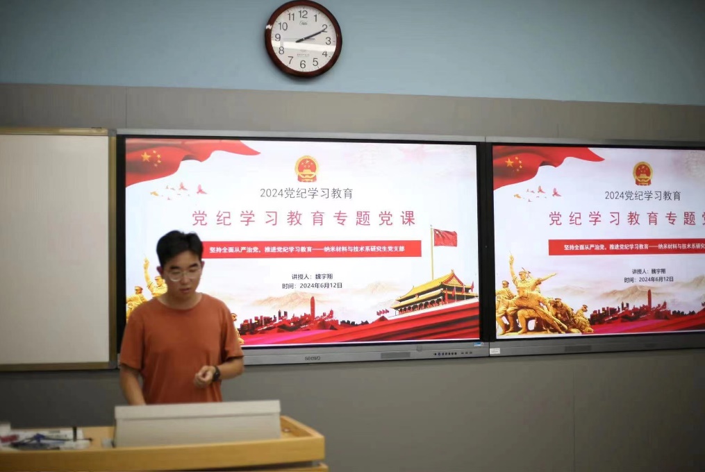 (通讯员 宫明威)为落实全面从严治党要求,推进党纪学习教育深入开展,确保党员更好贯彻执行党的纪律和规矩, 6月12日下午,3044永利集团纳米材料与技术系研究生党支部在C楼126召开会议,支部书记魏宇翔以“坚持全面从严治党 推进党纪学习教育”为主题讲授专题党课。