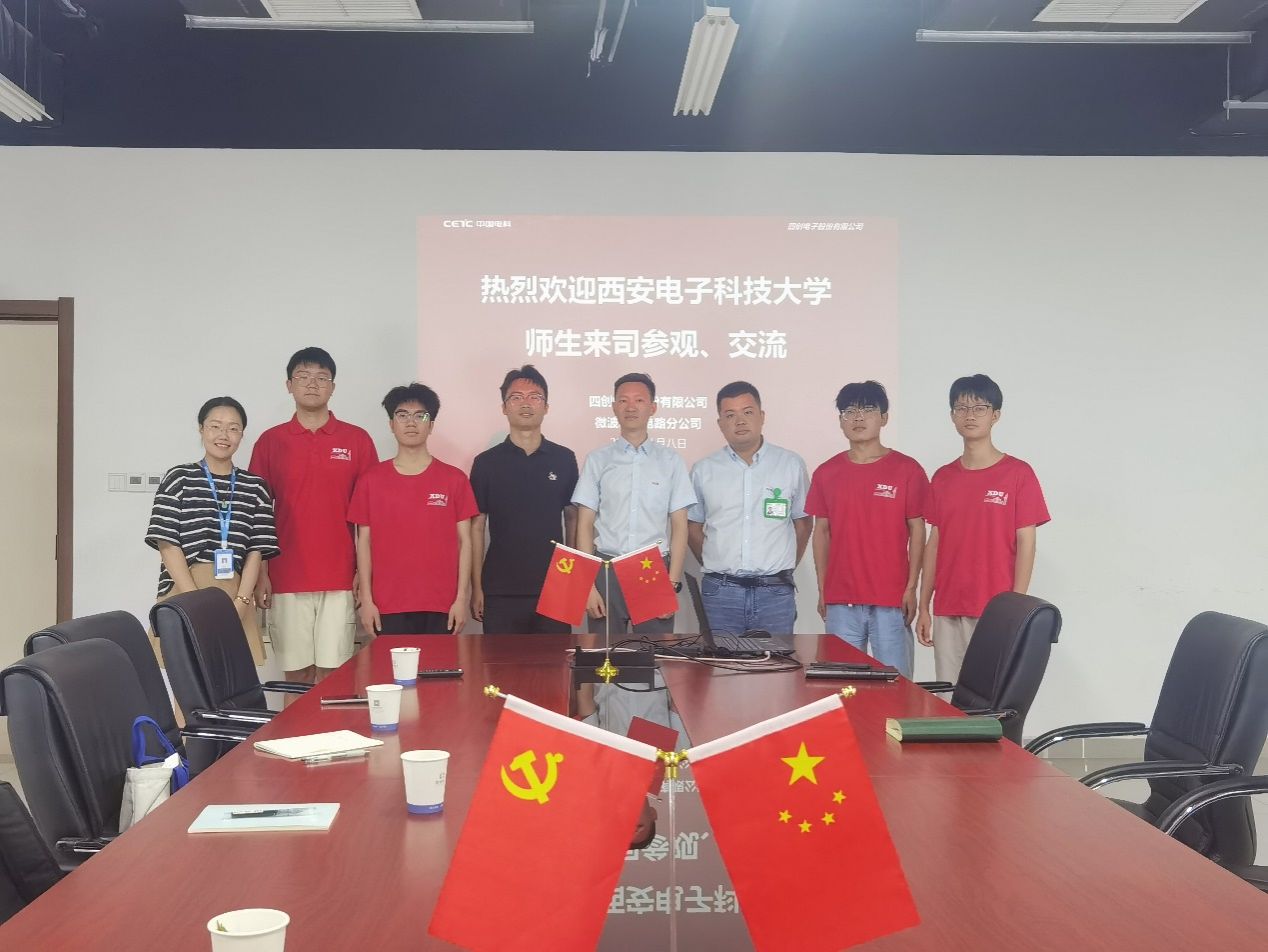 8月8日上午,实践队到达四创电子股份有限公司,在相关部门领导的陪同下,实践队走进生产车间一线,了解了产品生产基本工序。参观过程中,实践队员们联系课堂中所学知识对相关技术问题积极提问,与技术人员进行了交流。座谈会上,张闻功分别从学科专业特色、人才培养等方面对学院情况进行了介绍,希望以本次实践为契机,为学院学生和企业搭建交流平台,让学生充分了解行业发展现状。双方并围绕企业人才需求、学生能力培养、招聘流程等问题进行讨论交流。