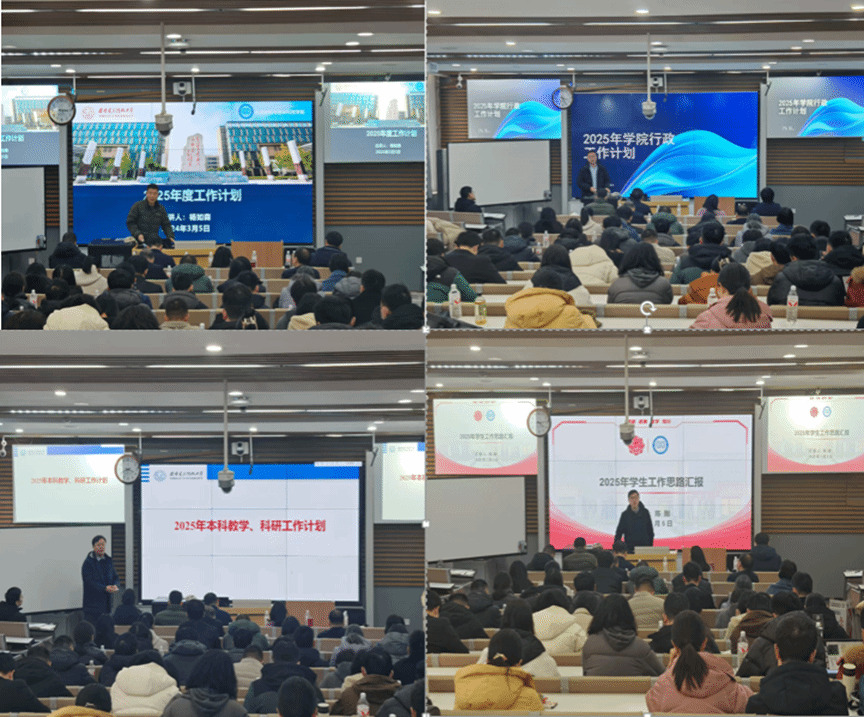 会上,学院领导班子就分管工作,进行年度工作计划汇报,对新阶段学院在教育教学、科学研究、师资队伍建设等方面开展的工作、面临的挑战进行了深入阐述。在教育教学方面,着重介绍了提升课堂教学质量、强化实验教学体系、优化升级拔尖创新人才培养体系、持续强化本科教学质保体系建设,同时反思了教学质量提升过程中遇到的瓶颈问题。在科学研究方面,强调要凝练学科方向,整合优势资源,加强有组织科研,力争在重大科研项目、高水平科研成果等方面取得突破,积极探索产学研合作新模式,加强与行业企业对接,促进科研成果转化应用。在师资队伍方面,坚持引育并举,加大高层次人才引进力度,特别是要重点引进海外优秀青年学者,并建立健全青年教师成长机制,加强青年教师培养。在学生工作方面,关注学生的全面发展,注重培养学生的综合素质和创新能力,积极拓宽学生的社会实践和就业渠道,帮助学生更好地适应社会发展需求。全体教师集中观看了教育家精神2025年巡回宣讲视频,切实弘扬教育家精神,加强师德师风建设,贯彻落实全国、全省教育大会精神。