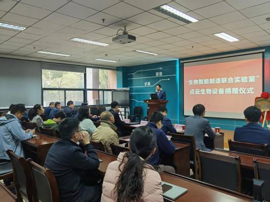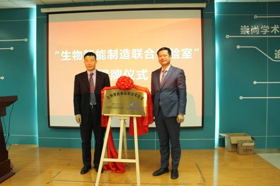 随后,曾庆丰与杨如森共同为联合实验室揭牌,张显代表实验室接受点云生物科技公司设备捐赠,张鑫对捐赠的3D打印设备进行了简要介绍。