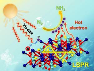 近年来,纳米光电化学与应用团队聚焦绿色化学和清洁能源技术,在光催化固氮合成氨领域取得了一系列的研究成果。团队创新性的提出了开发基于等离激元半导体光催化固氮技术。等离激元效应来自于自由载流子的集体振荡,广泛存在于金属纳米结构中。尽管金属等离激元纳米材料在光催化中也有广泛的应用,可以通过等离激元增强的光吸收和散射、热载流子传输以及等离激元共振能量传递等机理提高太阳能转化效率,但其能量转化效率仍然有限,多用于弥补半导体材料的弱点。研究发现一些半导体纳米材料在可见光和近红外光范围表现出优异的等离激元共振吸收。相比等离激元金属纳米材料,这些半导体的等离激元共振效应的调控手段更加丰富。等离激元半导体材料普遍具有较高的缺陷浓度、非常宽的光响应波段,因而是理想的固氮光催化剂。该团队的研究人员设计制备了新型的等离激元半导体材料SrMoO4,其在可见光和近红外光范围具有强的等离激元吸收,其共振吸收峰的中心位置可从520 nm调节到815 nm,具有等离激元效应的SrMoO4表现出优异的可见光固氮性能。其增强的光催化活性主要来源于更宽的太阳光吸收波段、等离激元激发产生的热载流子和丰富的缺陷活性位点。一方面,宽禁带的SrMoO4具有较高的导带能级,本征激发形成的导带电子能在热力学上将氮气分子还原为氨;另一方面,等离激元激发产生的热载流子具有较高的能量,能够越过固液界面的肖特基能垒,将吸附在催化剂表面缺陷处的氮气分子还原为氨。但是,尽管缺陷在光催化固氮中展现出多方面的优点,其在半导体中的浓度仍需进一步的优化。我们的研究结果表明,过多的氧空位将会促进载流子的复合,从而降低催化剂的固氮性能。该研究工作发表在我国催化领域的TOP期刊《催化学报》的英文版Chinese Journal of Catalysis上,其中博士生李强同学为论文第一作者,赵振环副教授、青年教师王政,以及电子科技大学王志明教授为论文的共同通讯作者,3044永利集团为论文第一单位。