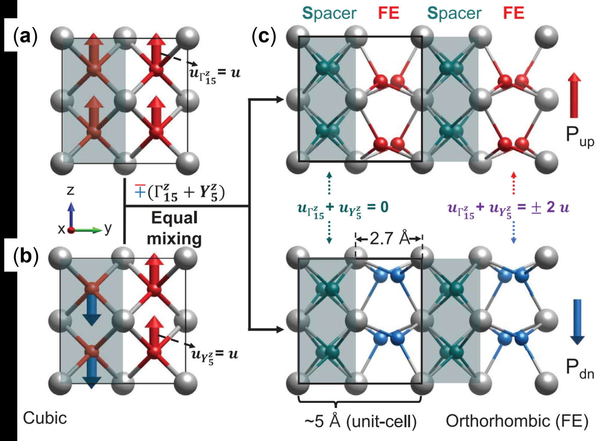 然而,第一性原理计算超高分辨率TEM实验观察均发现HfO2铁电正交相中存在特殊的“隔离”结构[1](如图1所示),即极性层被隔离带交替地隔开且隔离带隔绝了相邻晶胞中的偶极相互作用,电偶极子可在单个晶胞内稳定并可独立翻转,畴壁厚度几乎为零为了设计铁电存储器还必须建立原子尺度“隔离带与宏观电学性能之间的关联,如何通过介观理论建立这种宏观和微观之间的关系是个巨大的难题。