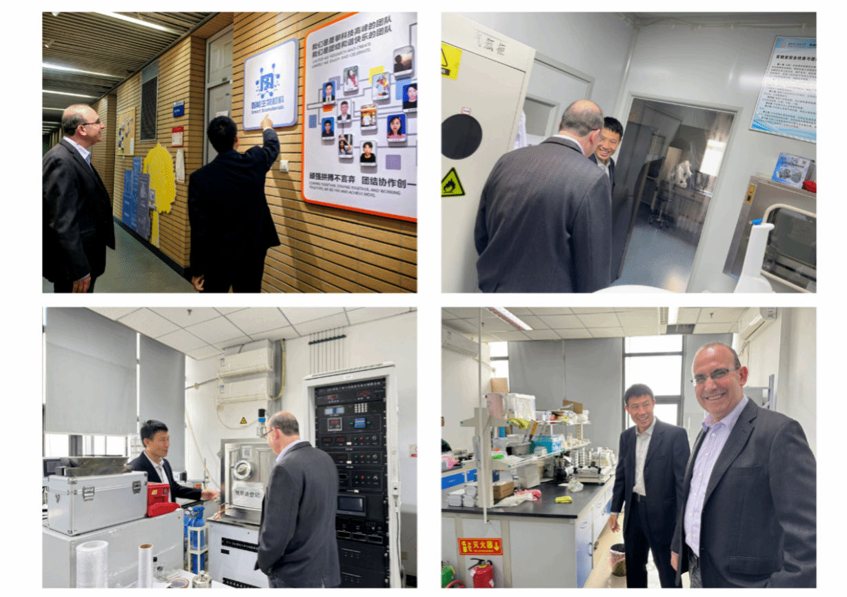 基于Ehud Gazit教授与材料学院智能生物材料及应用研究所前期多年的科研合作,Ehud Gazit首先参观了智能生物材料及应用研究所,杨如森教授热情接待了Ehud Gazit教授并向他详细介绍了实验室的组成结构和先进设备。在杨如森教授的引导下,Ehud Gazit教授参观了多个实验室,详细了解了研究所在生物材料和纳米技术领域的最新进展,探讨了双方未来可深化合作的领域。