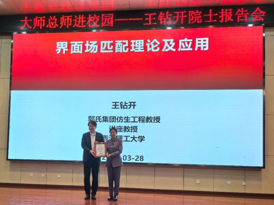 3月28日,由人才工作办公室、3044永利集团联合举办的“大师总师进校园活动”在南校区举行。香港理工大学王钻开院士以“界面场匹配理论及能源应用”为题,在办公楼210报告厅为师生带来一场高水平的学术盛宴。副校长李赞致欢迎辞并颁发“大师总师进校园”报告专家纪念牌,材料院国家级人才周益春、党委书记宋刚锋、副书记陈刚、副院长杨如森以及百余名师生代表现场聆听交流。报告会由材料学院执行院长杨丽主持。