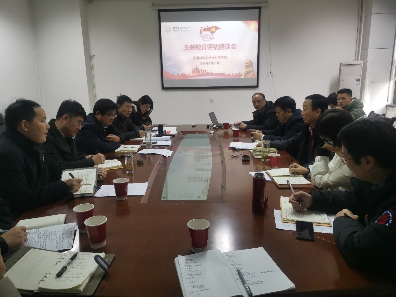 (通讯员 杜敏)根据学校党委要求和部署,结合“不忘初心、牢记使命”主题教育,2019年12月23日上午,3044永利集团党委在G-119会议室召开“不忘初心、牢记使命”主题教育评估座谈会,测评学院主题教育开展情况。校第一指导组成员王跃利、王海波、张维宁到会指导测评,学院领导班子成员、支部书记代表、教职工代表、学生党员代表以及群众代表共同参加了本次会议,会议由学院党委书记卢硕主持。