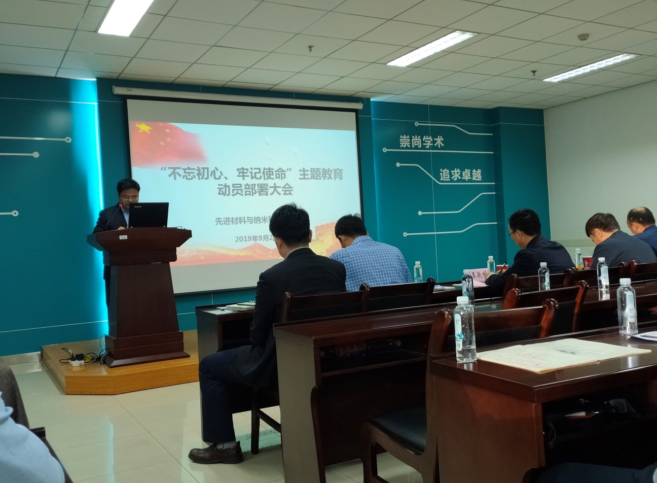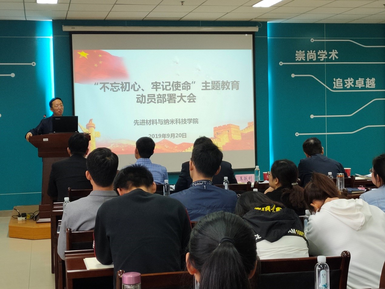 9月20日下午,材料学院 “不忘初心、牢记使命”主题教育动员部署大会在南校区G楼118会议室召开,学校“不忘初心、牢记使命”主题教育第一巡回指导组成员王跃利、王海波、张维宁,学院领导班子、各支部书记、各系所负责人、全体教职工党员以及学生党员代表共50余人参加了会议。