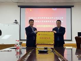 我院智能生物材料及应用研究所党支部书记杨如森、材料科学与工程系党支部书记李智敏分别介绍了支部党建基本情况,并表示通过党支部结对共建,以党建助力业务工作,为各项工作提供新思路和好做法,切实推进基层党建和业务工作的深度融合。最后,双方举行结对共建揭牌仪式。均表示要以此次共建结对为新起点,共同探讨推进党建工作,同时以党建促科研、教学合作发展。