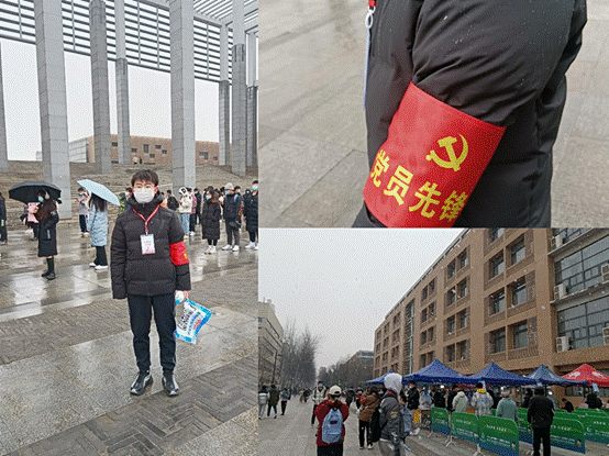数九寒冬,气温跌到了冰点,学生党员纪宁、入党积极分子王磊等同学作为“疫情防控先锋岗”志愿者在学校各个核酸检测点前忙碌着。他们的主要工作是维持核酸检测现场秩序,提醒前来检测的师生保持一米以上安全距离,督促师生扫码登记核酸采样时间,此外还要帮助医护人员清理检测台的垃圾等。在入党2周年政治生日这天坚守抗疫一线,意义非同寻常,纪宁坚定地说道:“有召必来!我和一批同学深夜迅速集结,凌晨准时上岗,这是共产党员的使命。相信同心战役,就能共克时艰,艰难的时光总能过去,西安加油!考研加油!”“00后”学生党员们充分展现了不怕苦、不畏难、斗风险、担责任的激昂青春风采。