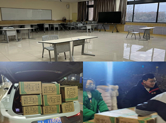 此外,学院还有一大批教师争先恐后地加入疫情防控党员先锋岗预备队,负责运输考研物资、核对研招数据、协调考务考生做核酸检测等,为研招工作顺利开展搭建桥梁。“哪有什么岁月静好,不过是有人替你负重前行”,教工党员们接过时代交予的重任,为风雪路上的考研人撑起了一片晴天。
