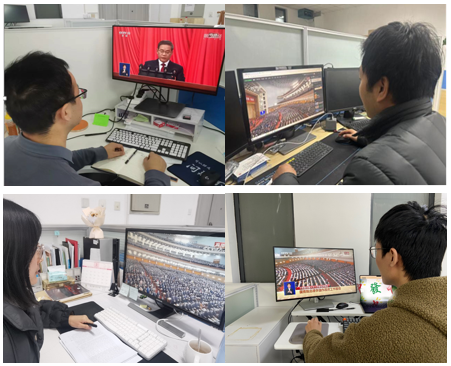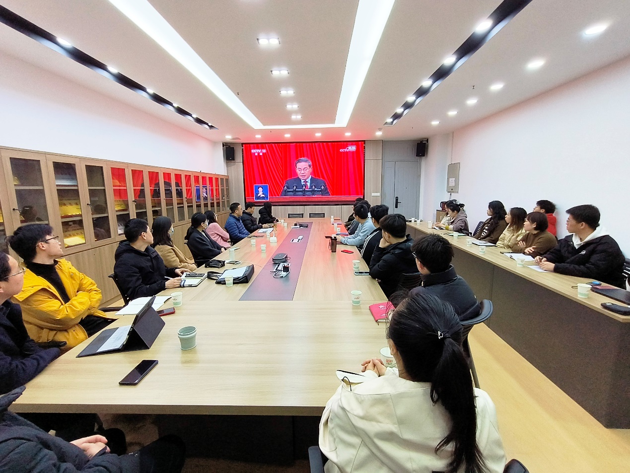 学院领导班子成员、机关管理干部、学生支部委员、各支部师生党员代表在南校区G142会议室集体观看学习,大家全体起立奏唱国歌,认真聆听李强总理政府工作报告。直播结束后,各系所、各支部教师学生结合本职工作和学习,开展热烈讨论和交流。
