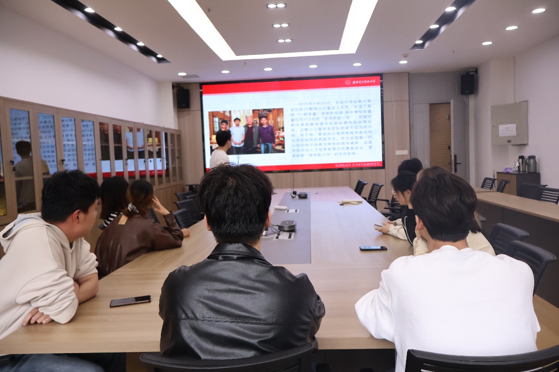 胡燕鹏的宣讲主题为“以航天精神为旗,做昂扬西电学子”。他从“坚持立德树人——不忘育人初心”“胸怀国之大者——不忘报国初心”“弘扬航天精神——不忘建院初心”三个方面具体展开,向同学们生动介绍了空间院自创院以来在“育人”“报国”路上的奋斗历程。