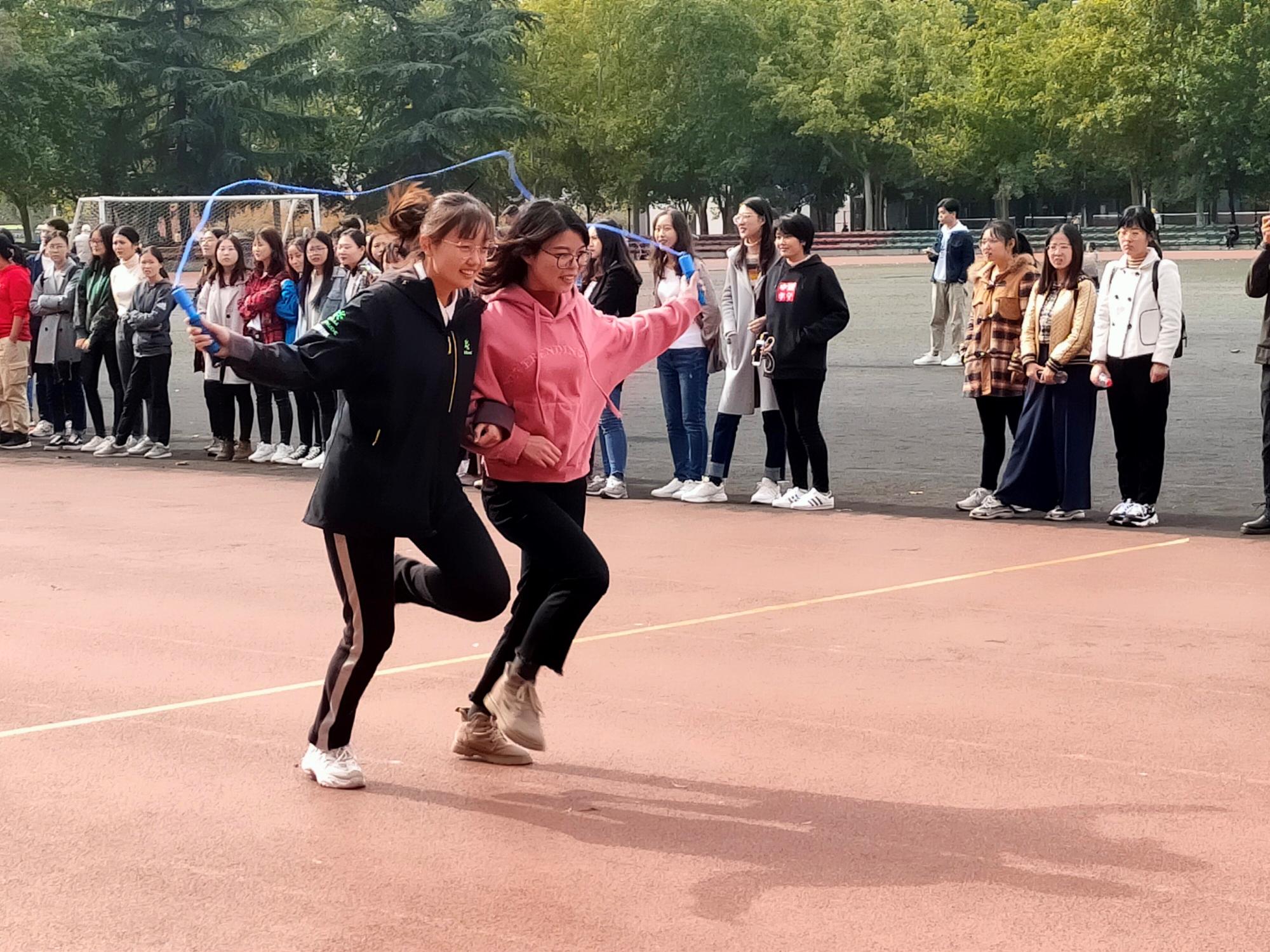 运动会虽然以趣味为主题,但赛场上仍弥漫着紧张的气氛,每个代表队都使出了浑身解数,希望赢得最终的胜利。跳大绳比赛中,摇绳的同学配合默契,绳子在空中划出优美的弧线,跳绳的同学们灵活的在绳中穿梭,最终也取得了不错的成绩。