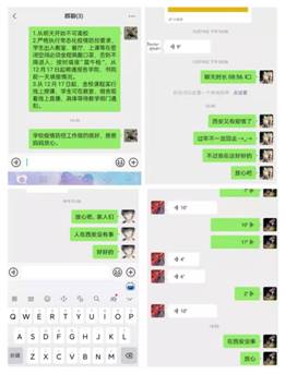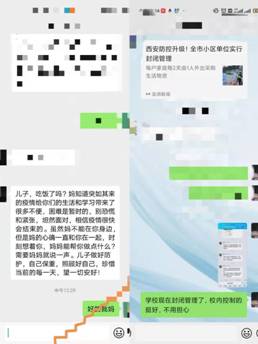 “妈妈,我们在西安挺好的,学校现在封闭,很安全,吃饭啥都有,有人监督戴口罩核算也在按时做,停课但未停学,剩下的都照旧和往常一样,你们放心吧,疫情肯定会过去的!”