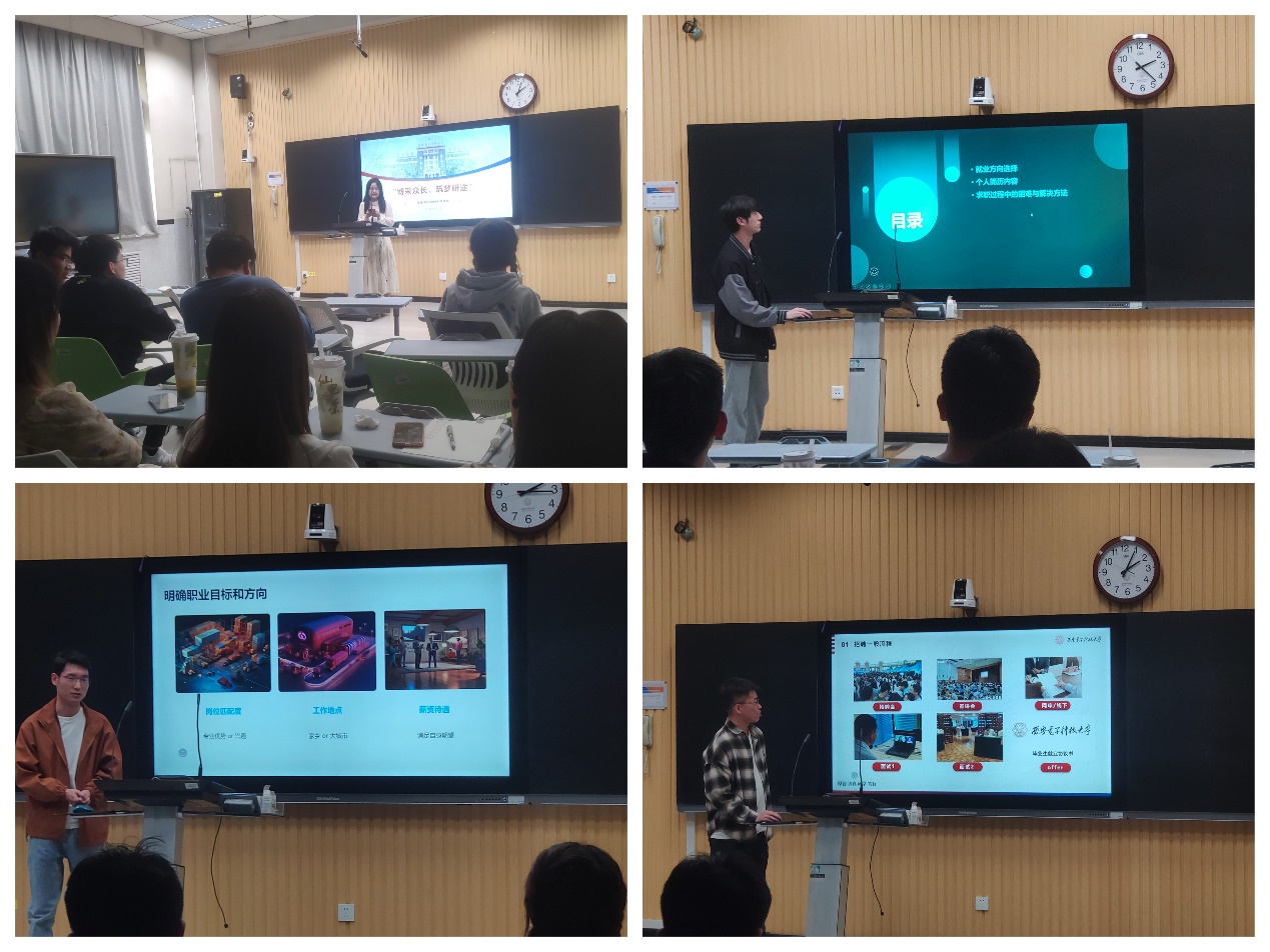 签约特变电工的王笑麟同学从就业方向选择、个人简历制作、求职过程中的困难与解决方法等方面展开分享。他告诉大家应以自身兴趣为驱动、市场需求为导向,灵活制定自己的个人职业规划,并就简历部分提出一些建议:个人基本信息务必填写准确,专业与研究方向需描述清楚;科研项目经历是用人单位判断应聘学生是否能够从事相应岗位的重要标准;自我评价部分不需要做过多赘述,需注重简历整体内容的准确性和结构的合理性。