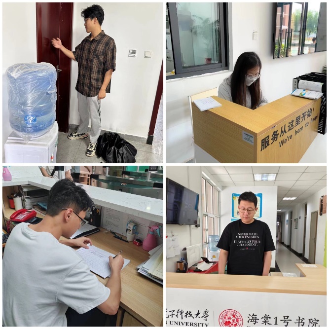 5月6日早上8点整,第一批宿舍楼管体验员按时到岗。他们协助楼管进行日常管理,督促学生遵守各项公寓管理规定,提醒学生清理宿舍门口的垃圾,做好借还钥匙登记、外来人员登记、设施损坏登记和报修等工作。张国翔同学谈到:“原以为宿管阿姨很轻松,体验后我才知道,身在这个岗位需要不定时且快速地处理很多工作,这要求我得具备足够的细心和耐心。”