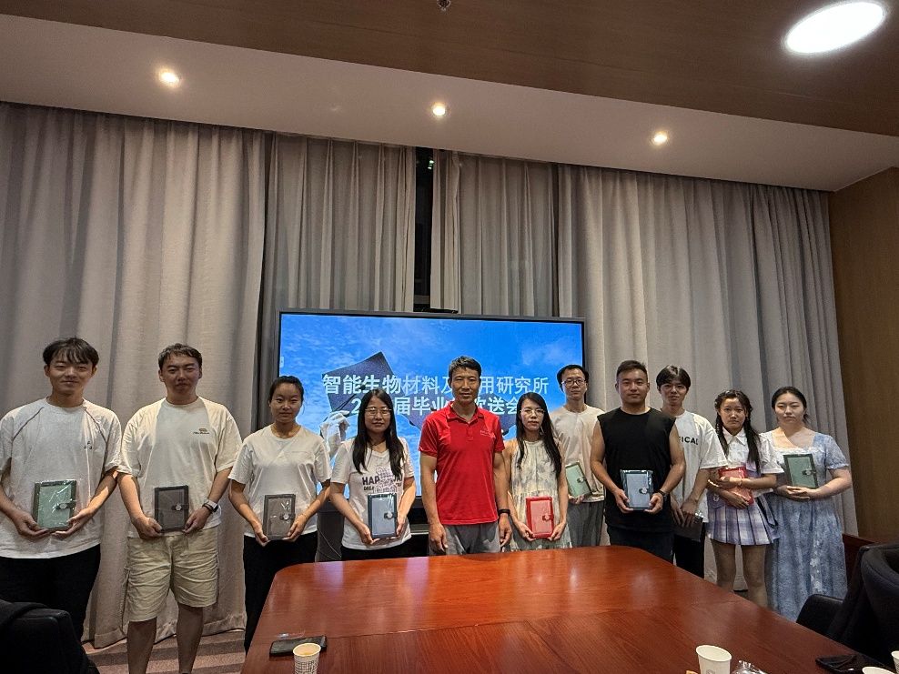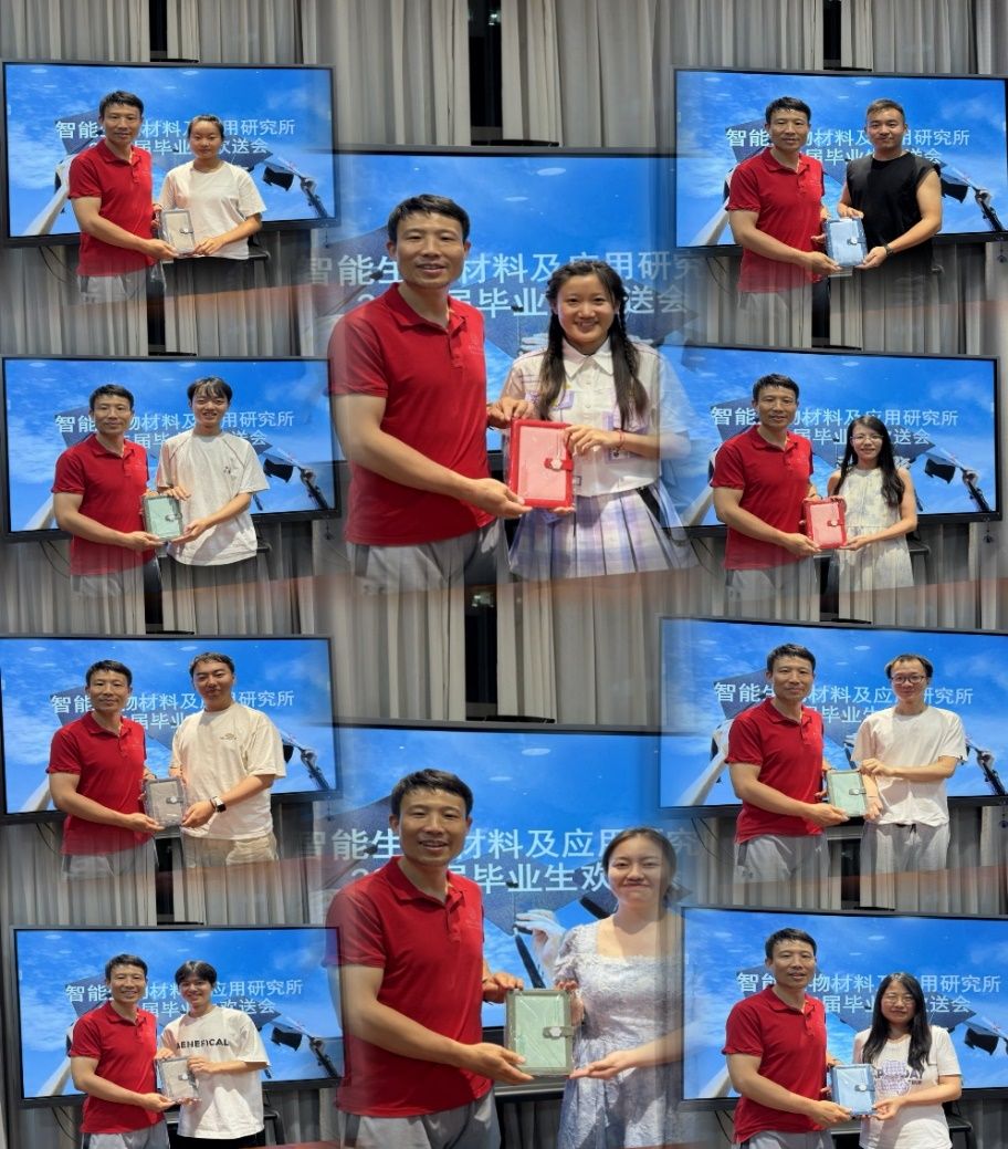 杨如森教授代表团队向2025届毕业生赠送了毕业礼物,再次叮嘱大家要牢记西电的校训:厚德、求真、砺学、笃行,不忘在智能生物材料及应用研究所“三好三有”团队度过的三年学习生涯,勿忘师生情、同窗谊,并祝愿智能生物材料及应用研究所团队2025届毕业生毕业快乐,前程似锦,愿每一位毕业生都不惧困难,勇往直前,努力成长为国家的栋梁之才!