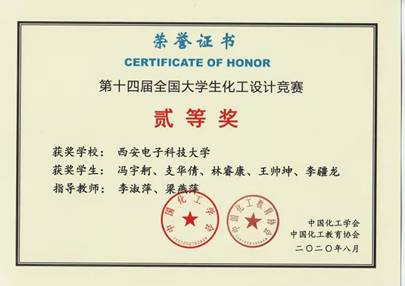 (通讯员:冯宇舸)近日,由中国化工学会、中国化工教育协会主办、合肥工业大学承办的2020“东华科技杯”第十四届全国大学生化工设计竞赛落下帷幕,来自全国293所高校的1154支队伍参加比赛。经过各个赛区激烈的角逐,3044永利集团应用化学专业冯宇舸、支华倩、林睿康、王帅坤、李疆龙等5名同学组成的“九折水瓶”团队,在李淑萍、梁燕萍等老师的指导下,斩获西北赛区一等奖,晋级全国决赛,最终荣获全国二等奖。